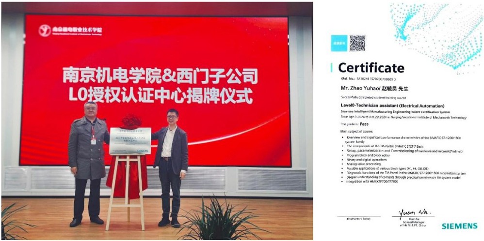2024年3月28日,江南网页版举行“西门子-南京机电L0授权认证中心签约揭牌仪式暨西门子L0教师认证结业仪式”,江苏省首家西门子L0授权认证中心落户学校。 至今已完成江南网页版、江苏城市职业学院等专科院校的培训工作,有效解决了地方智能制造企业对高技能人才的需求问题,受到广泛好评。