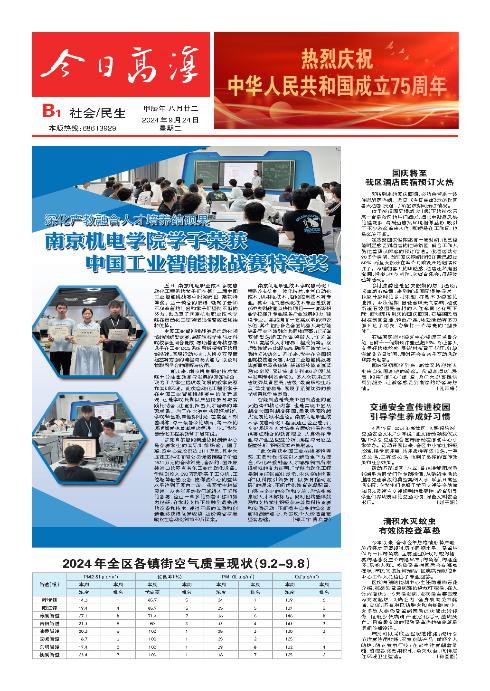荣获第十一届、第十二届中国工业智能挑战赛“高职组”全国特等奖、第十一届中国工业智能挑战赛全国一等奖。2024年9月24日《今日高淳》报纸B1版整版报道我校自动化工程系学子荣获中国工业智能挑战赛特等奖,其中《高淳发布》已于2024年9月12日刊载相关新闻。此外,还荣获江苏省教学能力大赛二等奖1项;江苏省高校微课教学比赛一等奖1项、三等奖1项;“西门子”杯中国智能制造挑战赛全国一等奖1项、二等奖3项、三等奖3项;“江苏工匠”杯智能化系统集成应用工业视觉应用与维护赛项一等奖3项;第三届全国高校电气类专业青年教师实践教学设计创新大赛全国一等奖1项;江苏省职业院校技能大赛工业网络智能控制与维护赛项二等奖1项、三等奖2项;江苏省职业院校技能大赛现代电气控制安装与调试赛项二等奖1项,三等奖2项;全国仿真创新应用大赛一等奖1项,三等奖2项。