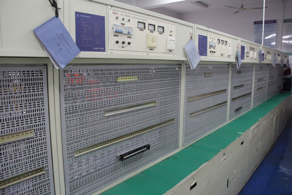 (5)PLC实训室。该实训室采用自锁连接插件,可完成交通灯控制、多液位控制等实训项目,提高了学生PLC开发和应用能力。