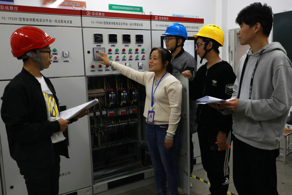 供用电技术专业主要实践教学基地包括新能源创新实训室、电工实训室、维修电工实训室、PLC实训室、智能供配电实训室、倒闸操作实训室、10kV模拟变电所实训室(与中电科共建)。