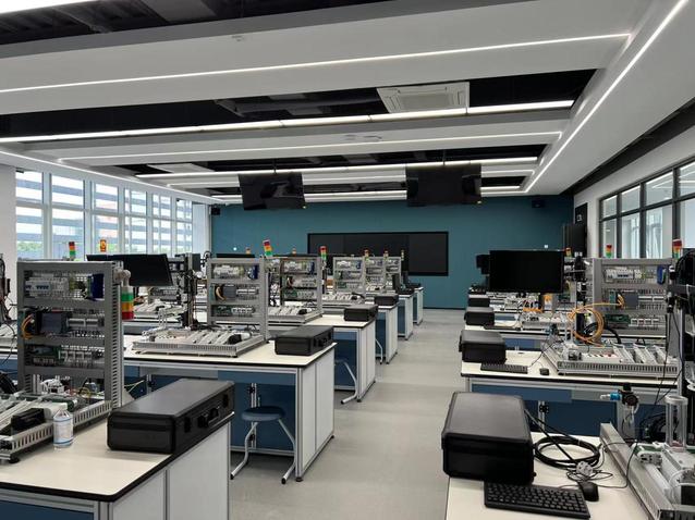 (1)运动控制实训室。该实训室可完成步进系统实训项目、伺服系统实训项目、HMI人机界面实训项目等。